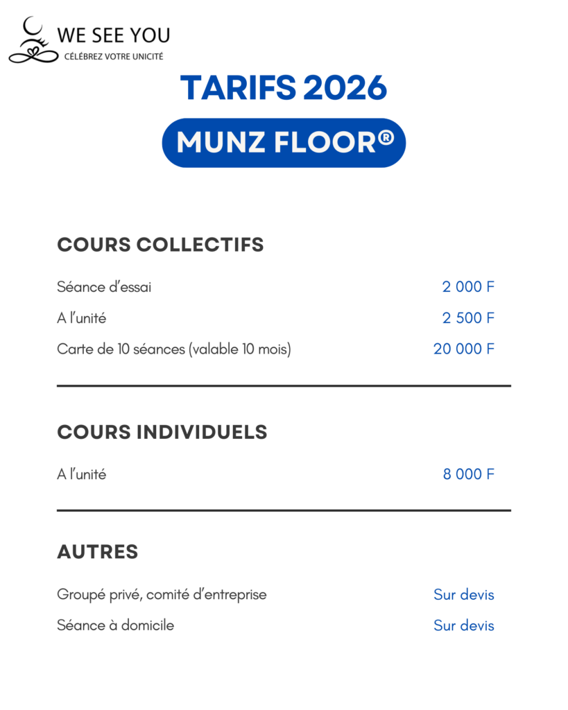 Pour l’instant, seuls les cours de MUNZ FLOOR® sont proposés dans le planning des cours collectifs. Actuellement nous proposons les cours de yoga-sophrologie en séance privée uniquement (en individuel ou en groupe), mais nous pourrons en organiser en cours collectif selon vos envies. 🌸 Si cela vous appelle, n’hésitez pas à nous le faire savoir.